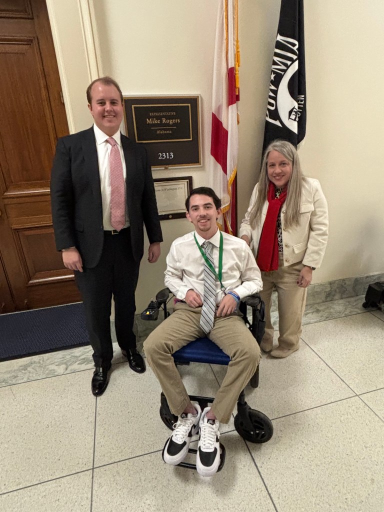 But in my first meeting the next day, I tossed that script to the DC breeze (which was surprisingly pleasant for this Bama boy). It turns out the words all came naturally. I confidently spoke to three Alabama House Representatives along with the offices of Senators Katie Britt and Tommy Tuberville about Friedreichs ataxia, how finding a diagnosis brought on years of confusion and frustration, and how I soon found hope in the research being done for FA by participating in clinical trials. I watched their faces light up when I told them that FA became one of 5% of rare diseases with an approved treatment on Rare Disease Day 2023.